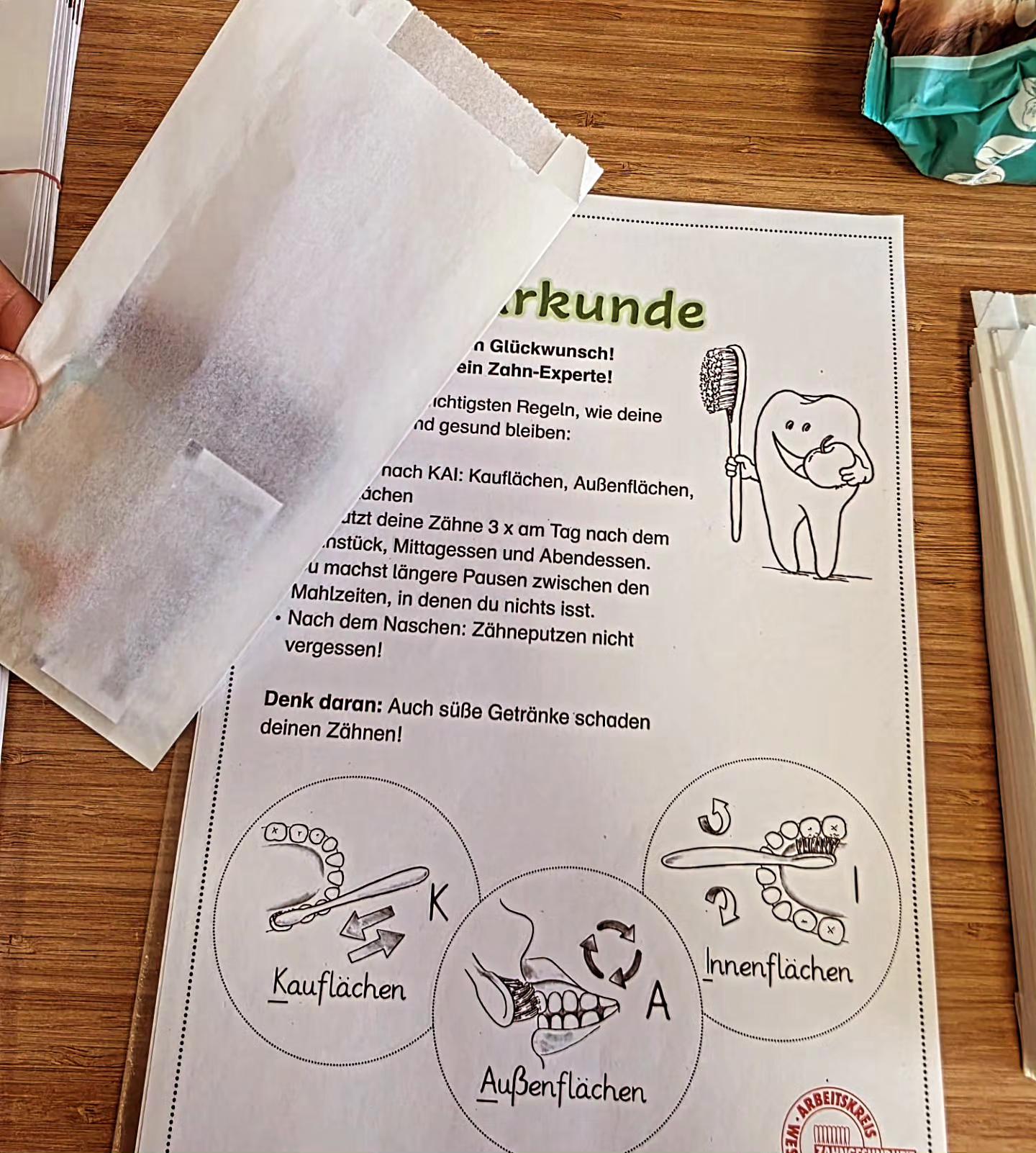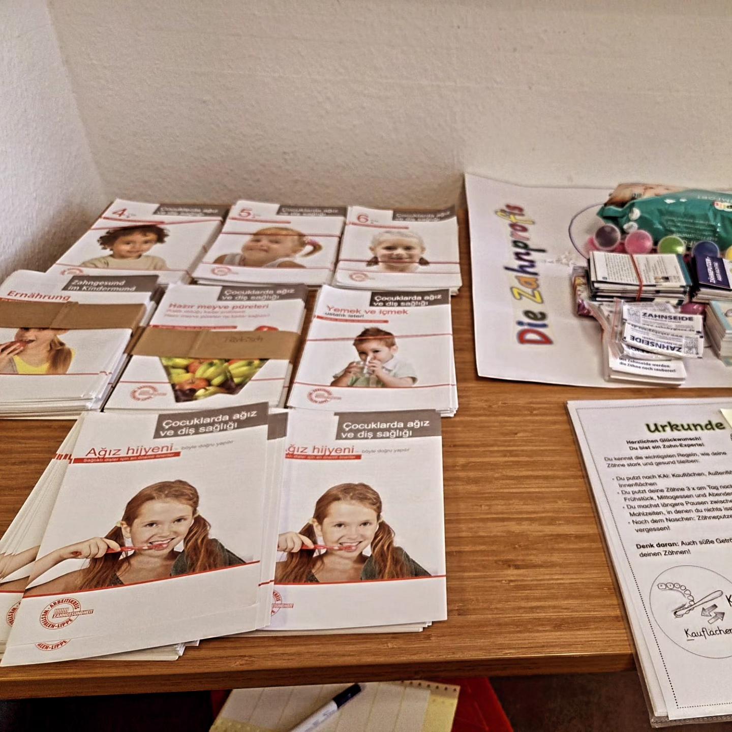 🎁 Zum Abschluss erhielten die Kinder Zahnbürsten, Zahnseide, Informationsmaterialien und Teilnahmeurkunden.